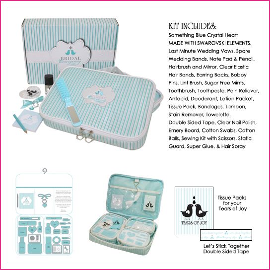 One of thee best gifts a bride-2-be can score is an “Emergency kit” containing travel size must-haves and the folks at (Classy Bride) have thought of everything a girl could need!