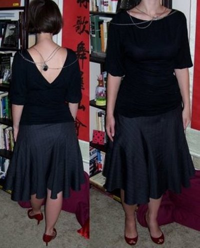 The backwards necklace works best with a dress (or top) that has a high neckline in the front and a deep scoop in the back. If you’re going for a sexy look, try a thin, long chain like Kate Hudson wore to the SAG Awards. A shorter, drop pearl necklace looks great with a vintage dress, like Ashley Olsen wore to the CFDA Awards.
