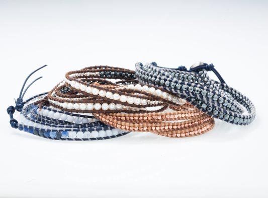The pieces showcase Chan Luus signature wrap style bracelet. The bracelets consist of custom-dyed thread or leather with unique semi-precious stones, gold or sterling silver. The 17-piece collection includes four different styles in a variety of colors. The bracelets will range from $95 to $225.