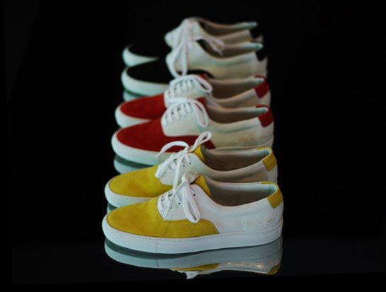 Common Projects Spring 2010 shoes are getting a lot of attention around the new colorways in their 5-Hole Slip On. The shoes are featured in three color tones for Spring and Summer, including white/yellow, white/red, and white/black. All feature the superb quality Common Projects has become synonymous for over the years.