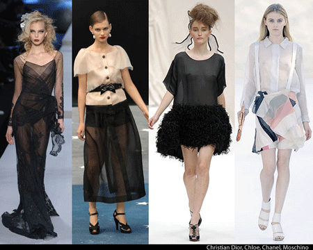 Skimpy just got classy has this trend slinks its way into summer 2010 fashion. Sheer fabric is something that isn’t only all over the runway but invading your local mall as well. Sheer fabric is becoming wearable by young fashionistas and reigning style queens alike and it is due to its new attitude. Sheer fabric doesn’t have to be reserved for pole dancers and nightwalkers anymore has it shape-shifts into cute summer tank tops, gorgeous gowns, and sleek nightwear.