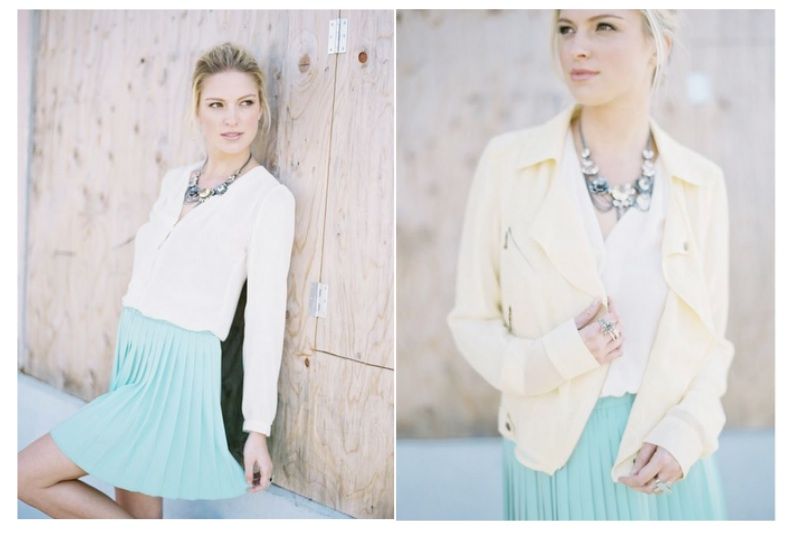 DON’T try and add prints and frills to your color blocked outfits (to start), what you really want to do is emphasise the bold, striking colors of the outfit, and so don’t want anything to distract the eyes. Texture is firm friend of color blockers. Texture is preferred over prints because it will give your outfit dimension. For example, a mint chiffon blouse with lime skinny denim jeans would look great.