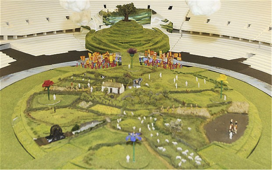 Boyle will transform the Olympic Stadium into the mythical British countryside complete with meadows, maypoles, picnicking families, toiling farmers, cricketers on the village green showing us the “isle of wonder” with the intention of conveying the English sense of humor a la Monty Python.